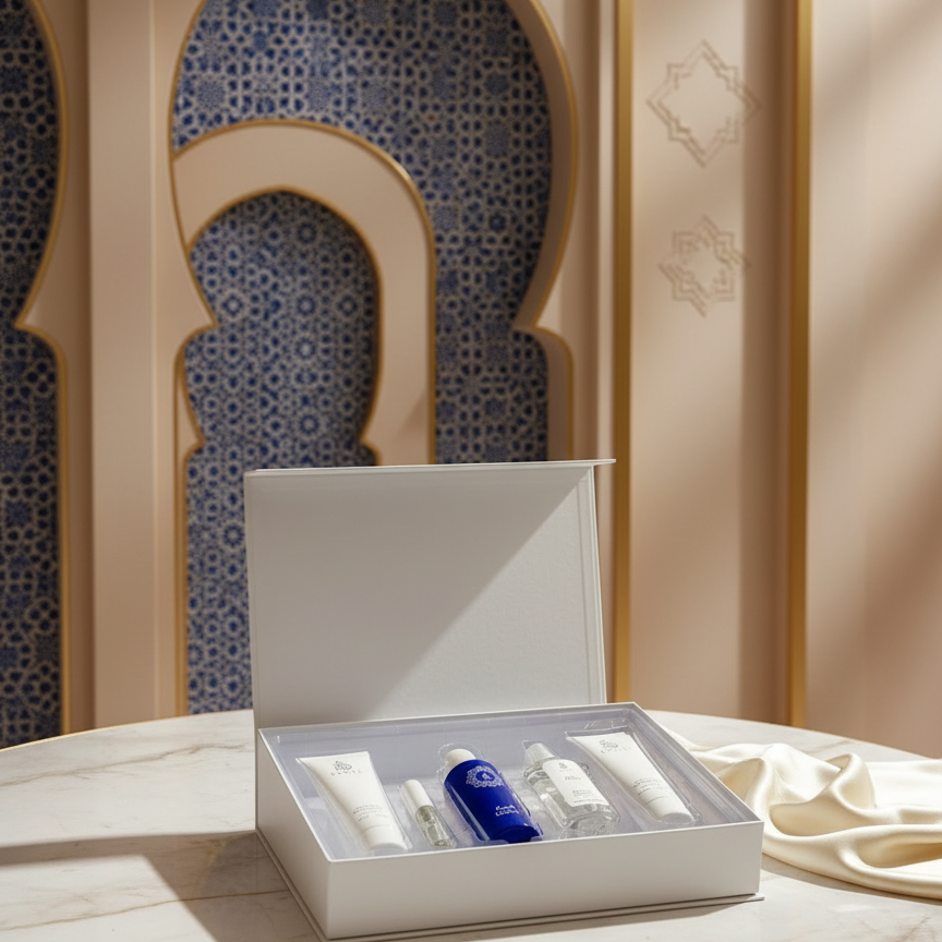 دلّلي نفسك بتجربة جمال راقية مصمّمة خصيصًا للمرأة الأنيقة اللي كتبحث على الأنوثة، الرقي، والفخامة هاد الباك النسائي الفاخر المستوحى من الأصالة المغربية كيجمع بين العناية والجاذبية بلمسة أنثوية